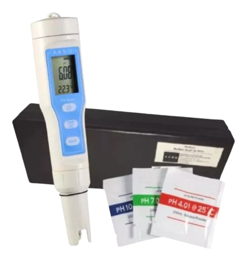 O Medidor de pH modelo pH Basic da AKSO, é resistente à água e realiza medições de pH e temperatura.