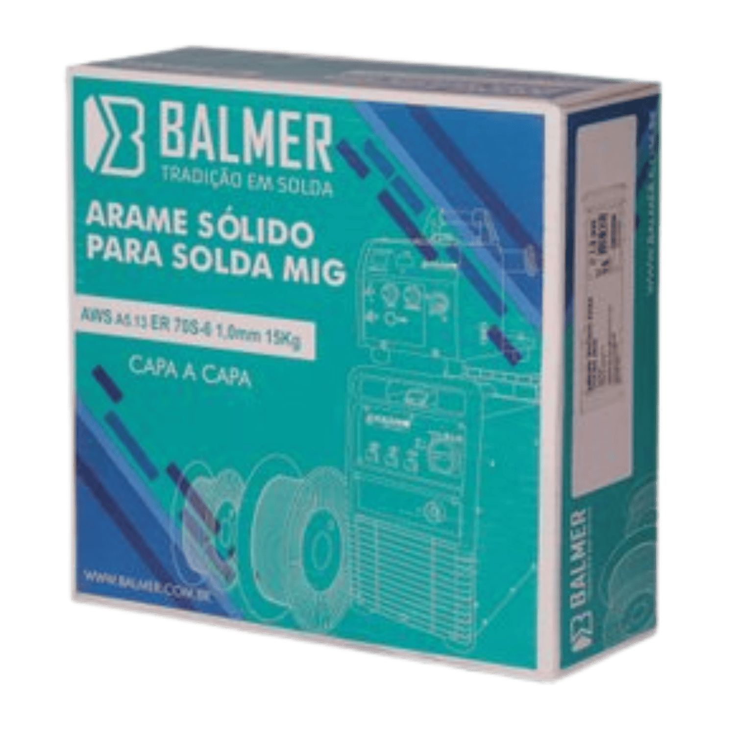 Arame sólido em Aço Carbono revestido em Cobre e enrolado pelo sistema “capa-a-capa” com carretel plástico. Processo de soldagem: MIG/MAG Norma: AWS A5.18 / ASME SFA5.18 ER70S-6.