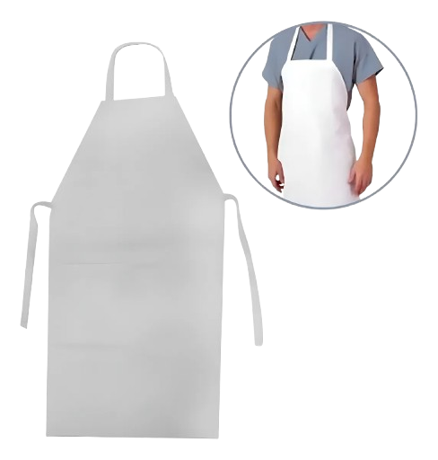 Avental impermeável de PVC forrado, ideal para proteger roupas durante atividades.