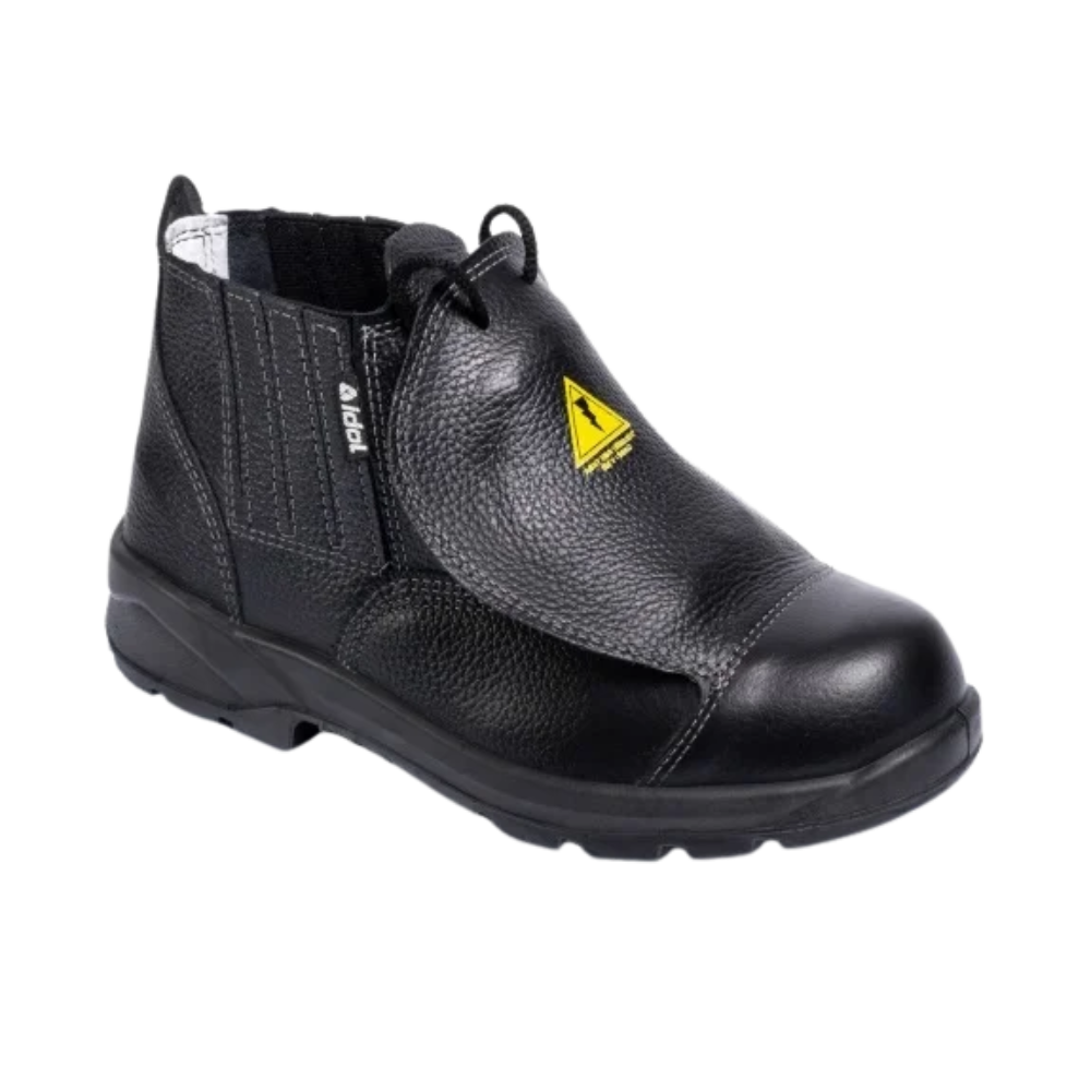 Botina de elástico com protetor de metatarso externo confeccionado em vaqueta relax na cor preta. Gáspea inteira (maior conforto e durabilidade).