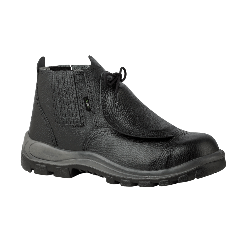 Botina de segurança tipo B, confeccionada em couro curtido ao cromo, com fechamento em elástico lateral para facilitar o calce e proporcionar conforto ao usuário. Possui biqueira de composite e protetor metatarso, garantindo alta proteção contra impactos. Conta com forro da gáspea em não tecido, forro lateral em tecido respirável e solado bidensidade de poliuretano (PU), injetado diretamente no cabedal, oferecendo absorção de impacto na região do salto e resistência a óleo combustível.