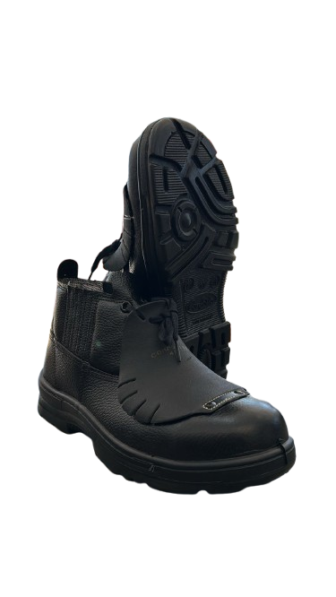 Botina confeccionada em couro vaqueta integral estampa relax, com elástico nas laterais. Possui palmilha interna removível em EVA com tratamento antimicróbios, com biqueira de composite, Indicado para serviços que apresentem riscos de queda de materiais sobre os artelhos ou influência de energia elétrica, uniformizando e garantindo conforto e proteção aos pés e tornozelos do usuário.