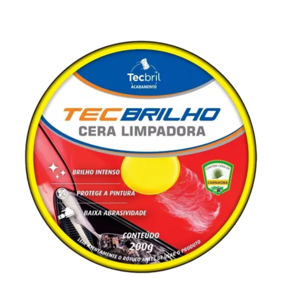 Cera Limpradora da Tecbril é excelente para todos os tipos de lataria com intura sólida, metálica e perolizada. Especificação: – Conteúdo: 200G; – Cera composta de carnaúba e silicone; – Função: Limpa, dá brilho e protege a pintura do veículo.