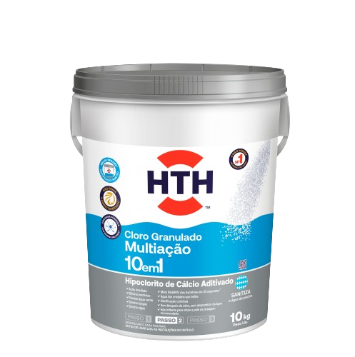O HTH™ Cloro Multiação 10 em 1 é multiação, elimina bactérias e fungos, dá brilho à água, pois intensifica sua cristalinidade, previne água verde e clarifica continuamente através da eliminação de micropartículas na filtração. O resultado é uma água de piscina tão pura e cristalina que até brilha