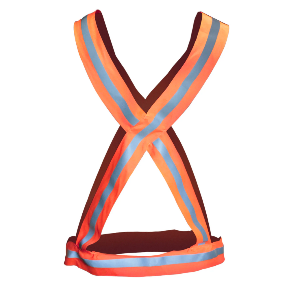 Confeccionado em fita de poliéster, nas cores verde ou laranja fluorescente, com faixa refletiva em toda extensão da fita. Fechamento lateral através de velcro com 50 x 100 mm. Tamanho único.