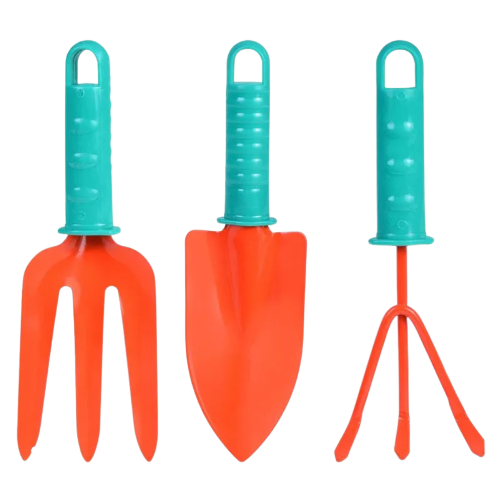 Ideal para a manutenção de vasos e jardins. Fabricado em aço carbono com pintura eletrostática a pó e cabos plásticos de alta durabilidade e resistência. Este kit é composto por 1 Pazinha, 1 Garfo de 3 pontas e 1 Ancinho ou Rastelo.