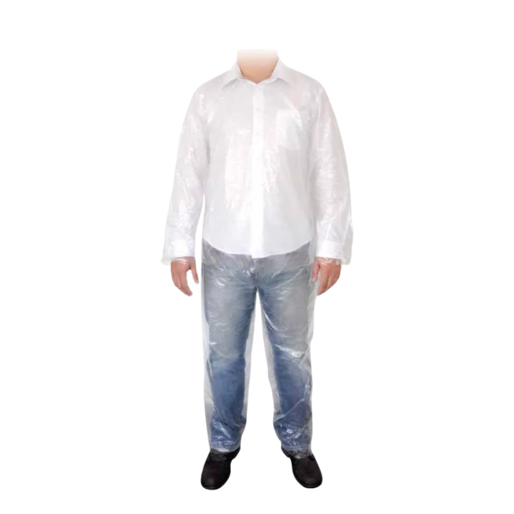 Conjunto Impermeável em Polietileno Transparente Calça e Capa com Capuz