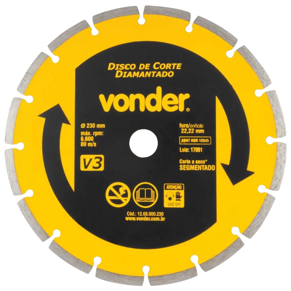 Diâmetro externo do disco de corte diamantado: 110 mm | Diâmetro do furo do disco de corte diamantado: 22,2 mm | Tipo de corte do disco de corte diamantado: A seco | Perfil do corte: Segmentado | Rotação máxima (rpm): 14000 /min