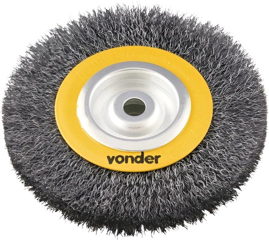 As escovas não desgastam o material base. O trabalho realizado pelas escovas de aço, basicamente configurado como limpeza e condicionamento de superfícies, é semelhante ao processo de jateamento. Ao usar cerdas de aço endurecido de alta qualidade, quando em alta rotação, as escovas conseguem separar os elementos contaminantes da base do material trabalhado sem desgastar o material base, nem alterar suas dimensões. Indicada para limpeza de peças em geral. Utilizada em motoesmeril.