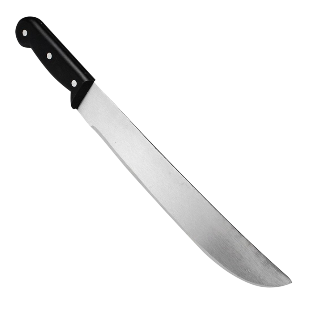 – Lâmina de aço SAE 1070 temperado; – Cabo de plástico fixado com rebites tubular de aço.
