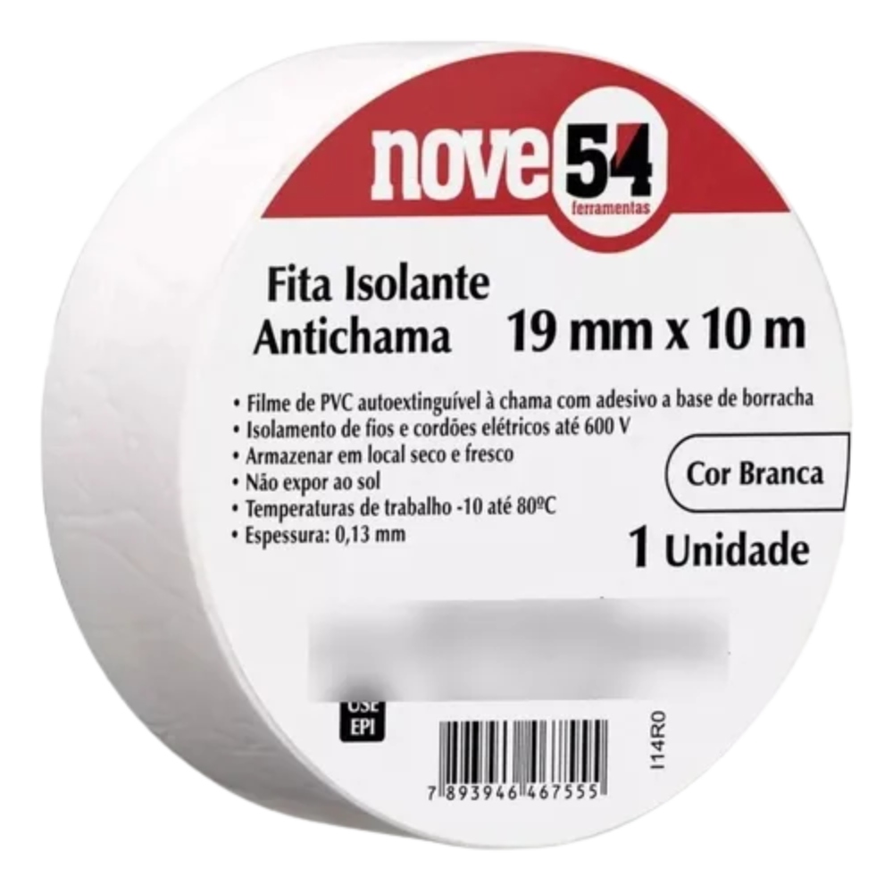 A Fita Isolante Branca 19mm X 10 Metros Antichamas é a solução ideal para isolar fios e cabos elétricos de forma segura e eficaz. Com 10 peças por embalagem, esta fita adesiva isolante é fabricada em filme de PVC com adesivo à base de borracha, garantindo durabilidade e resistência. Com uma espessura de 0,13 mm e uma largura de 19 mm, oferece uma excelente cobertura. Ela suporta temperaturas que variam de -10°C até 80°C e possui uma tensão máxima de isolamento de 600 V, tornando-a ideal para diversas aplicações elétricas. Além disso, a fita não é transparente e é escritível, permitindo que você rotule facilmente os fios isolados. Fabricada pela renomada marca Nove54, este item é novo e não inclui dispenser. Escolha a Fita Isolante Branca para garantir segurança e eficiência em seus projetos elétricos!