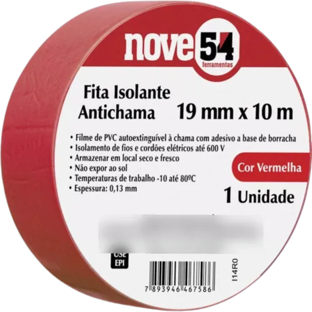 Experimente a mais recente inovação eletrotécnica com a Fita Isolante Antichama Vermelha Nove 54! Esta fita adesiva durável, com 19 mm de largura e 10 m de comprimento, foi projetada para segurança aprimorada em diversos reparos elétricos.
