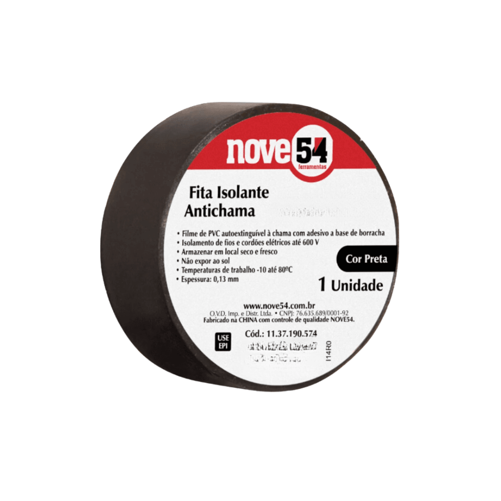 ‘- Indicada para isolar fios e cabos elétricos. – Fita antichama com temperatura de trabalho de -10°C até 80°C.