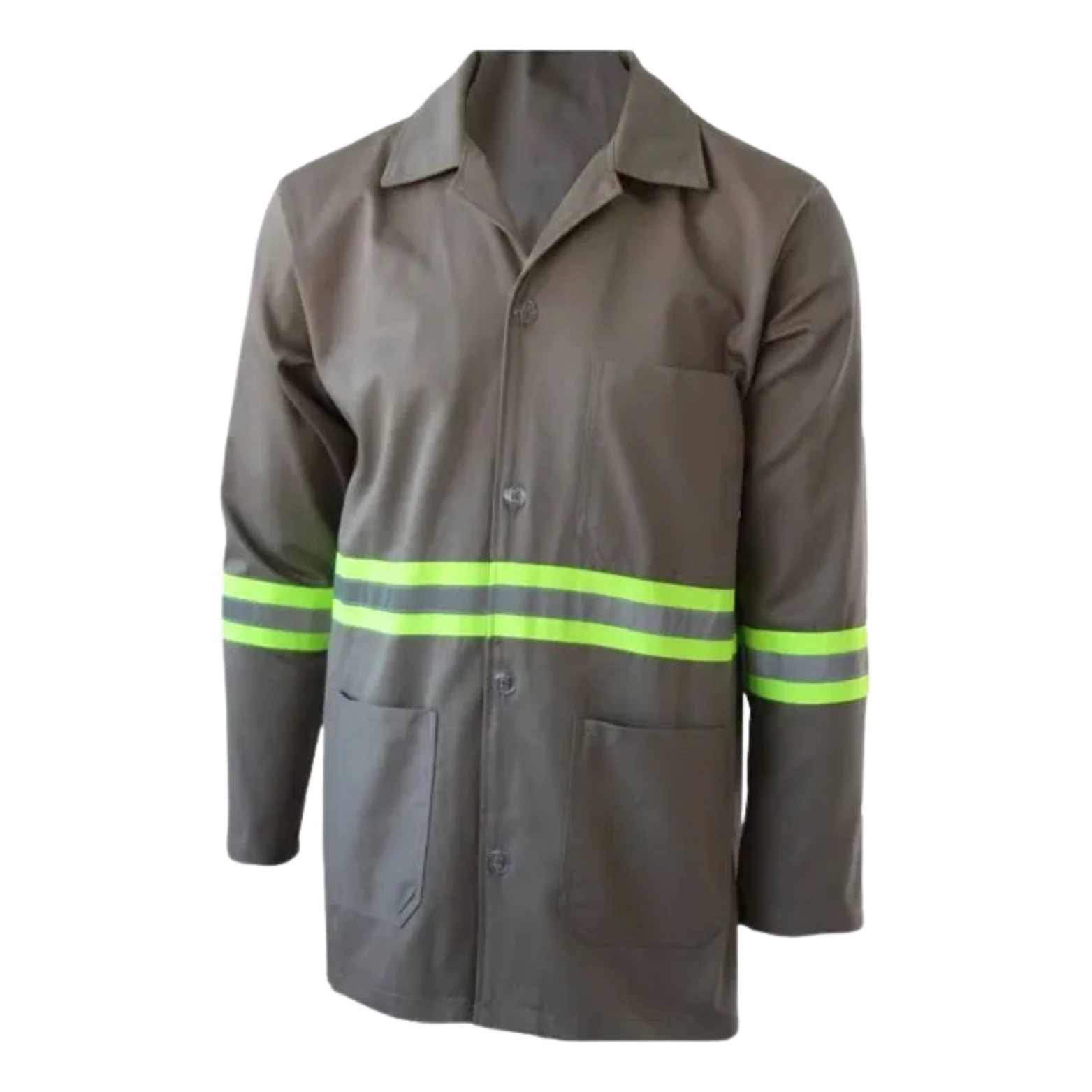 Jaleco de uniforme operacional confeccionado em brim leve importado de , garantindo conforto e resistência para o uso diário em diversas atividades. Apresenta gola italiana, proporcionando um visual profissional e elegante. O modelo conta com um bolso no peito esquerdo e dois bolsos inferiores, um à esquerda e outro à direita, ideais para facilitar o transporte de pequenos objetos e ferramentas. Além disso, possui faixa refletiva, oferecendo maior segurança e visibilidade em ambientes com pouca iluminação.