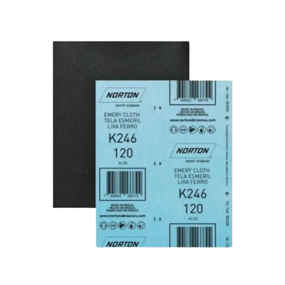 Lixa com costado de pano, indicada para preparação de superfícies de ferros, metais, pinturas antigas e para remoção de oxidação;  – Maior resistência em lixamentos pesados;  – Grão: 120;  – Medidas: 225x275mm