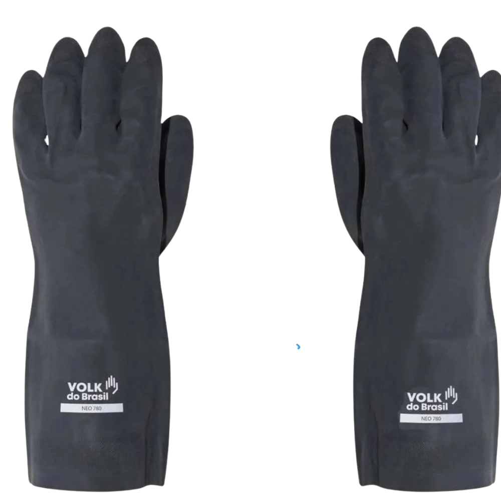 Luva de segurança confeccionada em neoprene e revestimento interno em flocos de algodão, acabamento antiderrapante na face palmar e ponta dos dedos.