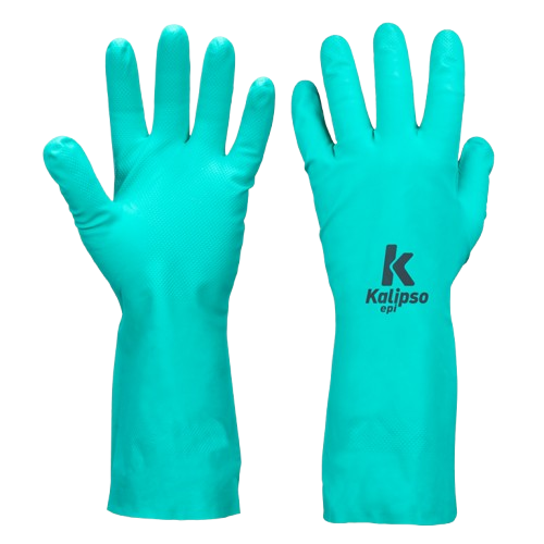 Luva de proteção NITRILI-KA 10 LIGHT confeccionada 100% em borracha nitrílica, forrada internamente com flocos de algodão, acabamento clorinado, acabamento antiderrapante na palma e face palmar dos dedos e ponta dos dedos. Acabamento do punho reto.