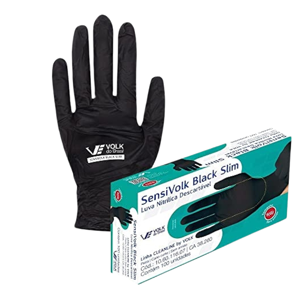 Luva de segurança confeccionada em nitrila, texturizada nas pontas dos dedos, sem pó.