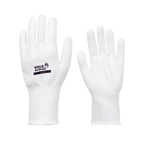 Luva de segurança tricotada com fibras térmicas de poliéster e spandex, sem emendas, ambidestra.