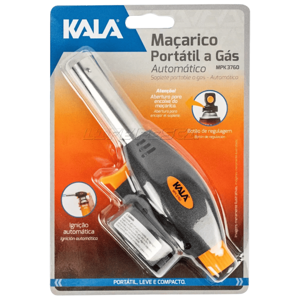 Totalmente portátil;Botão de acionamento e regulagem para controle da intensidade da chama;