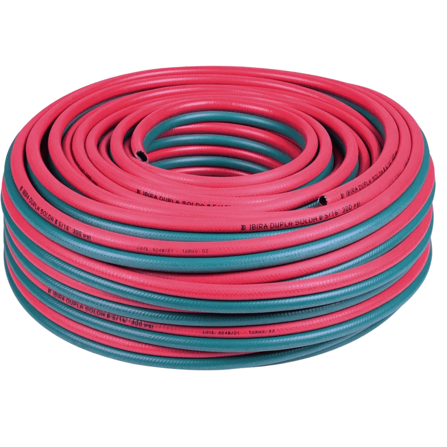 A Mangueira Dupla 5/16 Oxiacetileno 5mt é a escolha ideal para profissionais que buscam eficiência e segurança em suas operações de soldagem. Com um diâmetro de 7.9 mm, esta mangueira é fabricada com uma camada interna de PVC, garantindo durabilidade e resistência. A camada intermediária de reforço em fibra têxtil de poliéster proporciona maior segurança, enquanto a camada externa de TPE confere flexibilidade e facilidade de manuseio. Com uma pressão máxima de trabalho de 300 psi e uma pressão de ruptura de 900 psi, esta mangueira é perfeita para uso com reguladores de pressão e maçaricos de solda, corte e aquecimento. Além disso, seu design inovador permite uma instalação simples e rápida, tornando-a uma ferramenta indispensável para qualquer profissional da área. Adquira a Mangueira Dupla Soldax e experimente a qualidade e a confiabilidade que você merece!