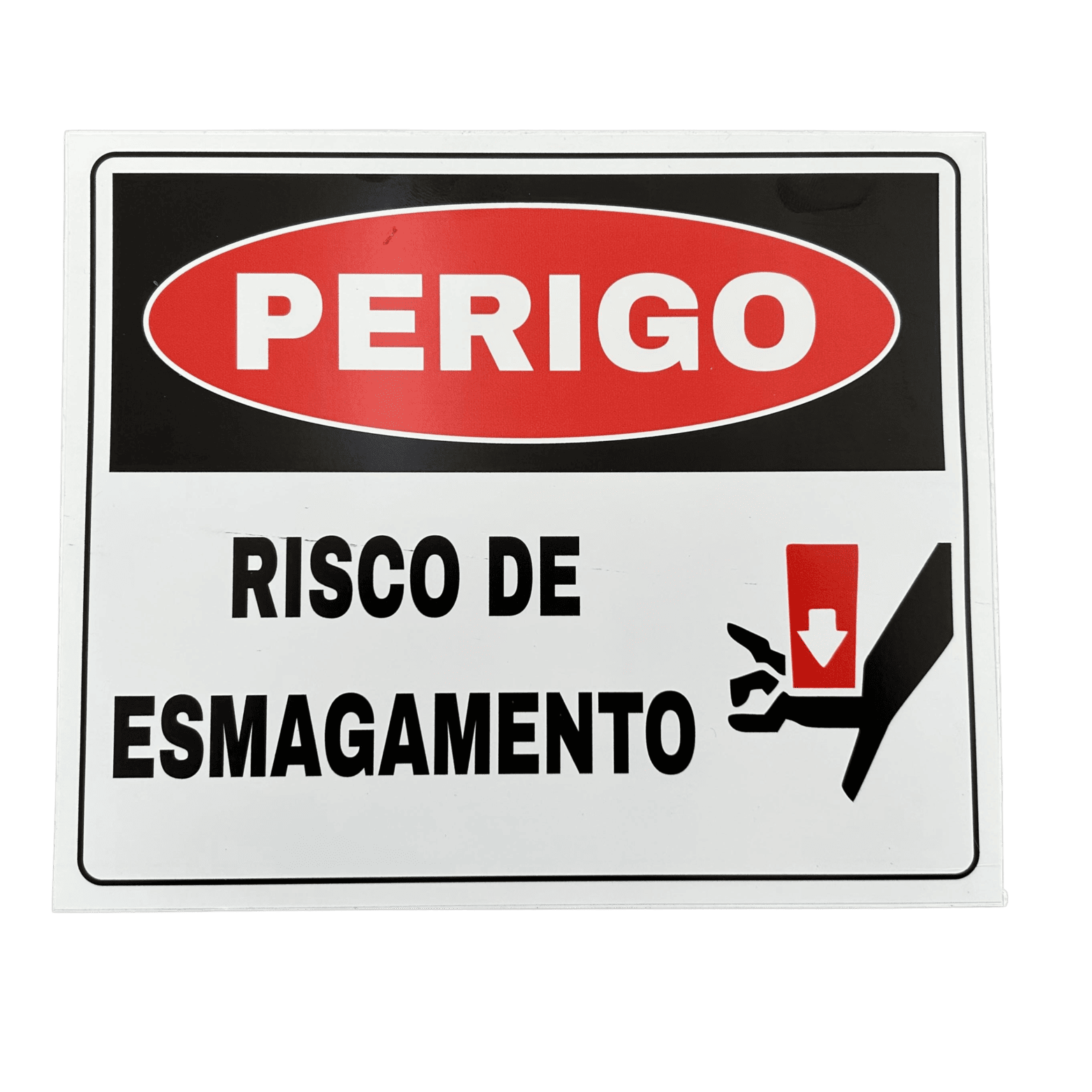 PLACA PVC 2MM 23X19CM “PERIGO RISCO DE ESMAGAMENTO”