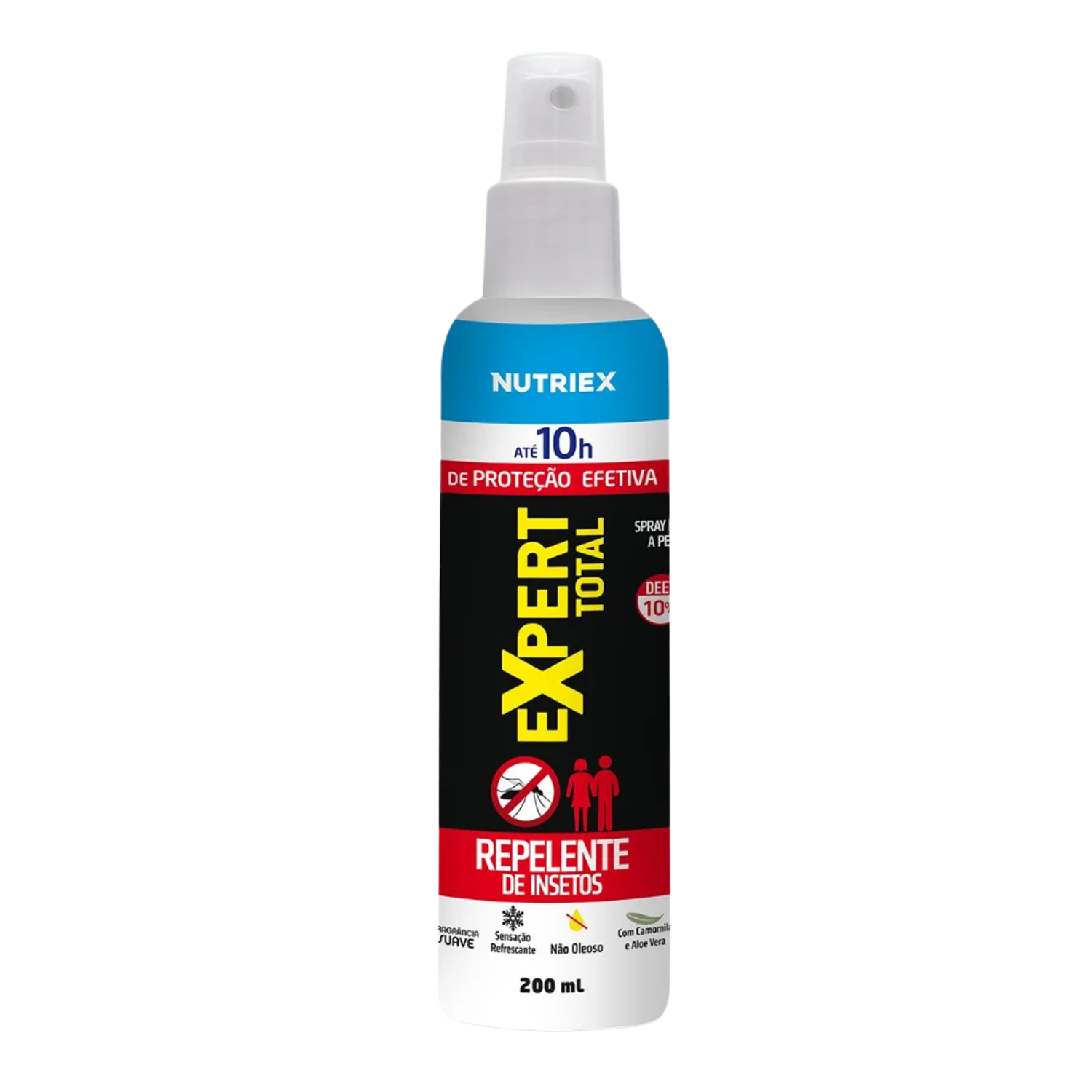 O Spray Repelente de Insetos Expert 10 Horas é uma solução especialmente formulada com DEET, um poderoso ativo repelente, conhecido por sua eficácia comprovada. Enriquecido com Aloe Vera e Camomila, proporciona uma sensação refrescante, acompanhada de uma fragrância suave e não oleosa. Este spray repelente foi desenvolvido para proteger toda a família, incluindo crianças e gestantes, por até 10 horas contra os insetos e o Aedes aegypti, vetor de doenças como Dengue, Zika, Chikungunya e Febre Amarela. Dermatologicamente testado, é seguro para uso diário.
