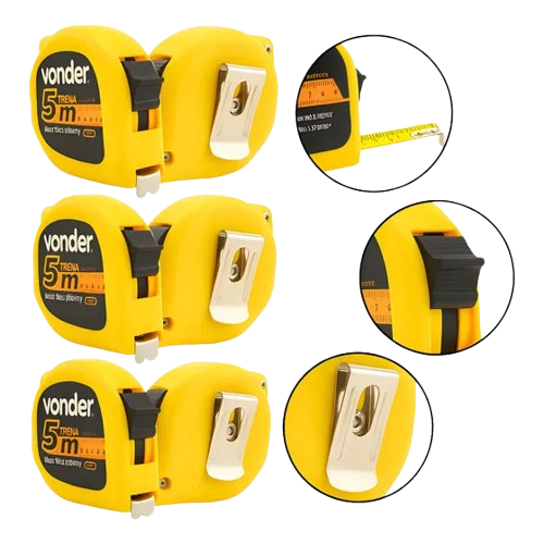 • Gancho auto-ajustável na ponta da fita, permitindo medições internas e externas mais precisas;
