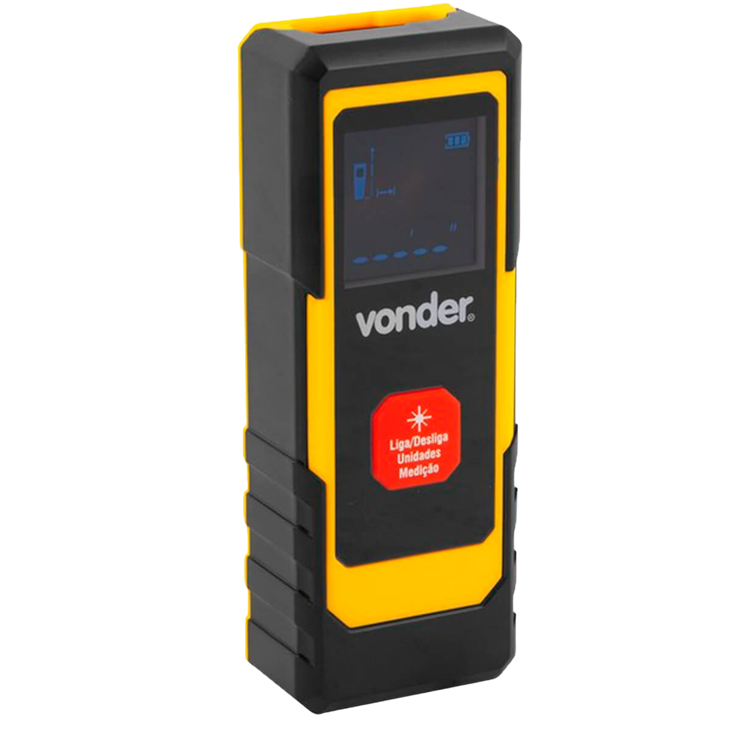 Possui indicador de nível de carga das pilhas. É extremamente leve e pequeno, facilitando a portabilidade e o manuseio. Indicado para realizar medições de distância em ambiente interno, permitindo medições em 2 unidades diferentes. Duração aproximada das pilhas alcalinas: 5.000 medições. Desligamento automático do laser em aproximadamente 30 segundos e do aparelho em 180 segundos.
